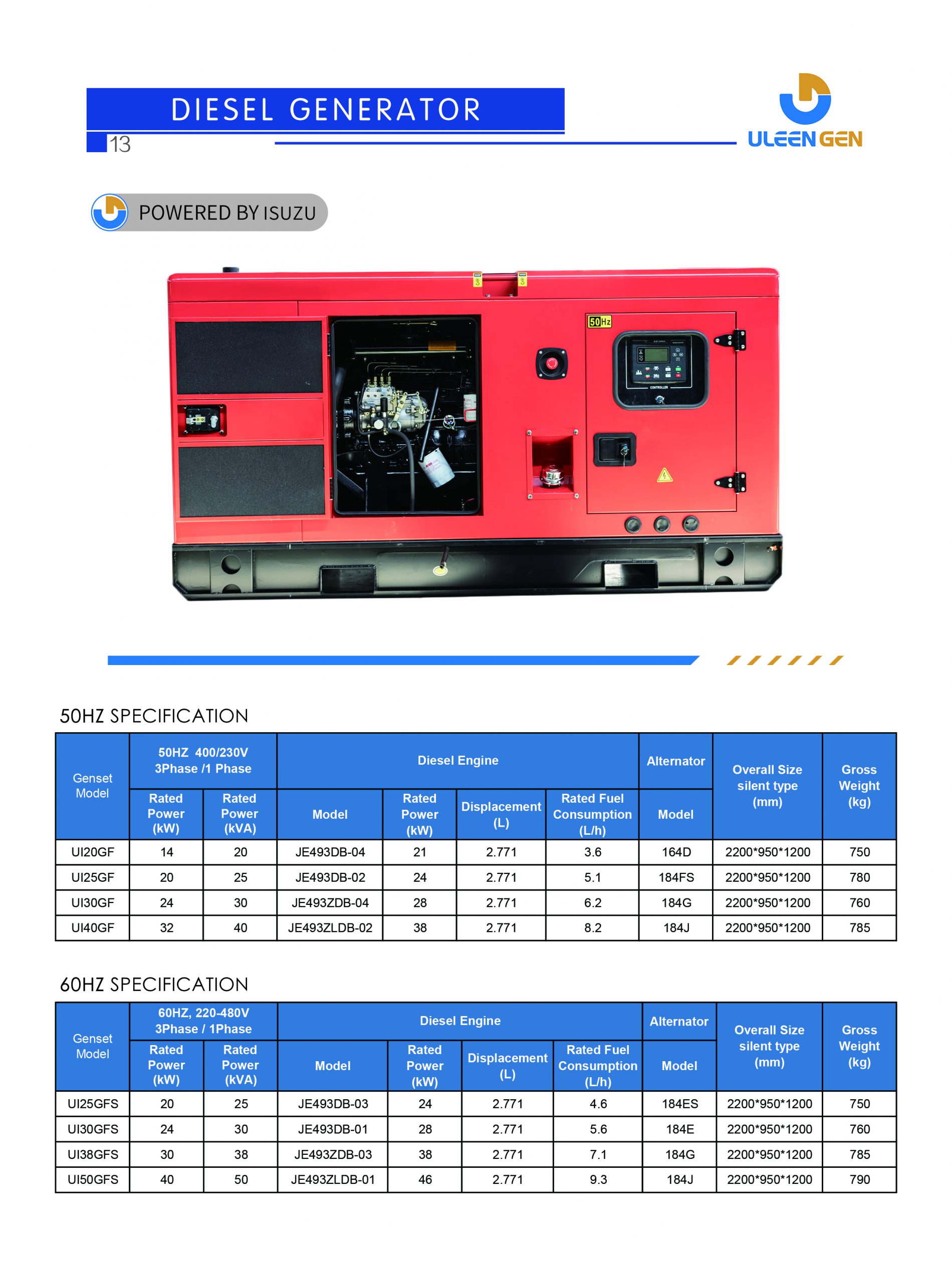 Isuzu is a Japanese manufacturer of diesel engines since 1937. The Isuzu company is renowned worldwide for its commercial vehicles, particularly diesel engines and trucks. Isuzu is a leading global manufacturer of medium- and heavy-duty diesel trucks and an authority on diesel engine technology. The 493 engine is derived from the mature 4JB1 technology of Isuzu Motors of Japan. Jiangling Motors pioneered the introduction of Isuzu light truck and 4JB1 engine technology in China in 1985 through a combination of technology and trade, and began assembling, manufacturing, and selling Isuzu light trucks and engines. In 1993, the company established a joint venture with Isuzu. With the tightening of domestic emission regulations, Jiangling Motors, through collaboration with Isuzu and the adoption of Bosch high-pressure common rail technology, has upgraded the 493 engine from its initial naturally aspirated China T1 emission standard to the current China T5 emission standard. With power ranging from 57kW to 85kW, the engine boasts powerful power, ultra-low fuel consumption, ultra-low vibration and noise, mature technology, and easy maintenance. It is an ideal engine for generator sets.