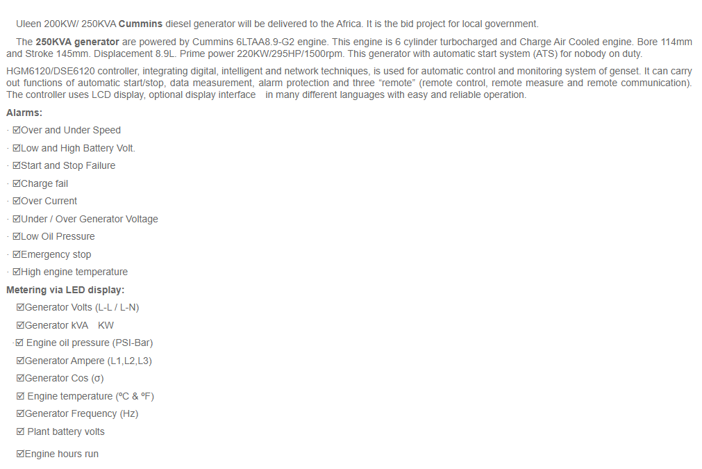 200kw 250kva Cummins Diesel Generator Will Be Delivered To Africa