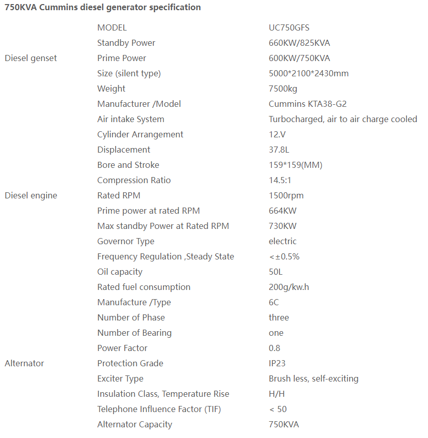 600kw 750KVA Cummins diesel generator powered by Cummins engine KTA38-G2. Cummins diesel generator sets with the feature of good quality, stable performance and low fuel consumption, and are widely used in public utilities, industrial and mining enterprises, engineering construction, animal husbandry, communications and other fields.