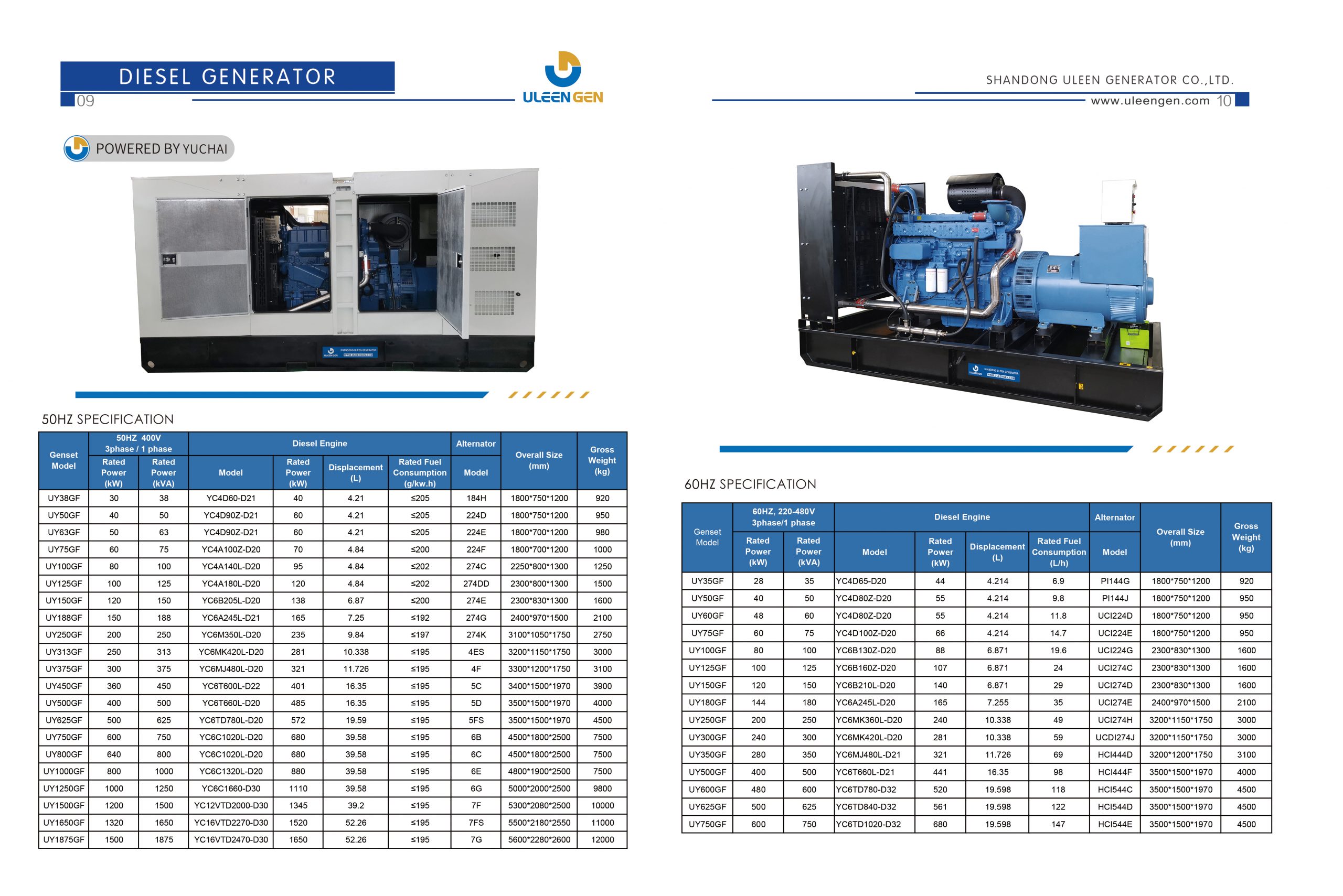 Yuchai is a prominent Chinese manufacturer of diesel engines since 1951. They offer a wide range of products suitable for various applications, including standby, prime, and continuous power generation. Yuchai as one of the top three diesel engine brands in China, has large range of power from 20kVA to 3750kva with reliable quality include YC4D, YC4A, YC6A, YC6MK, YC6MJ,YC6K, YC6T, YC6TC, YC6TD, YC6TH, YC6C, YC12VTD, YC12VC, YC16VTD, YC16VC, YC20VTD series.